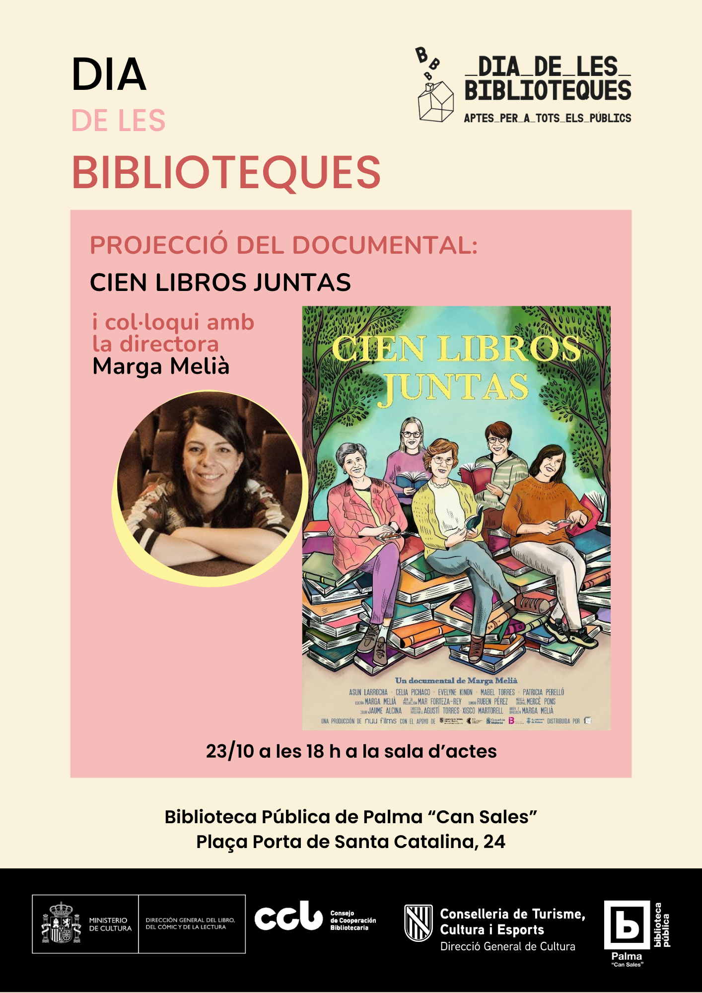 La Biblioteca Pública de Palma “Can Sales” convida a la projecció del documental Cien libros juntas, dirigit per Marga Melià, amb la presència de la directora per a un col·loqui posterior.