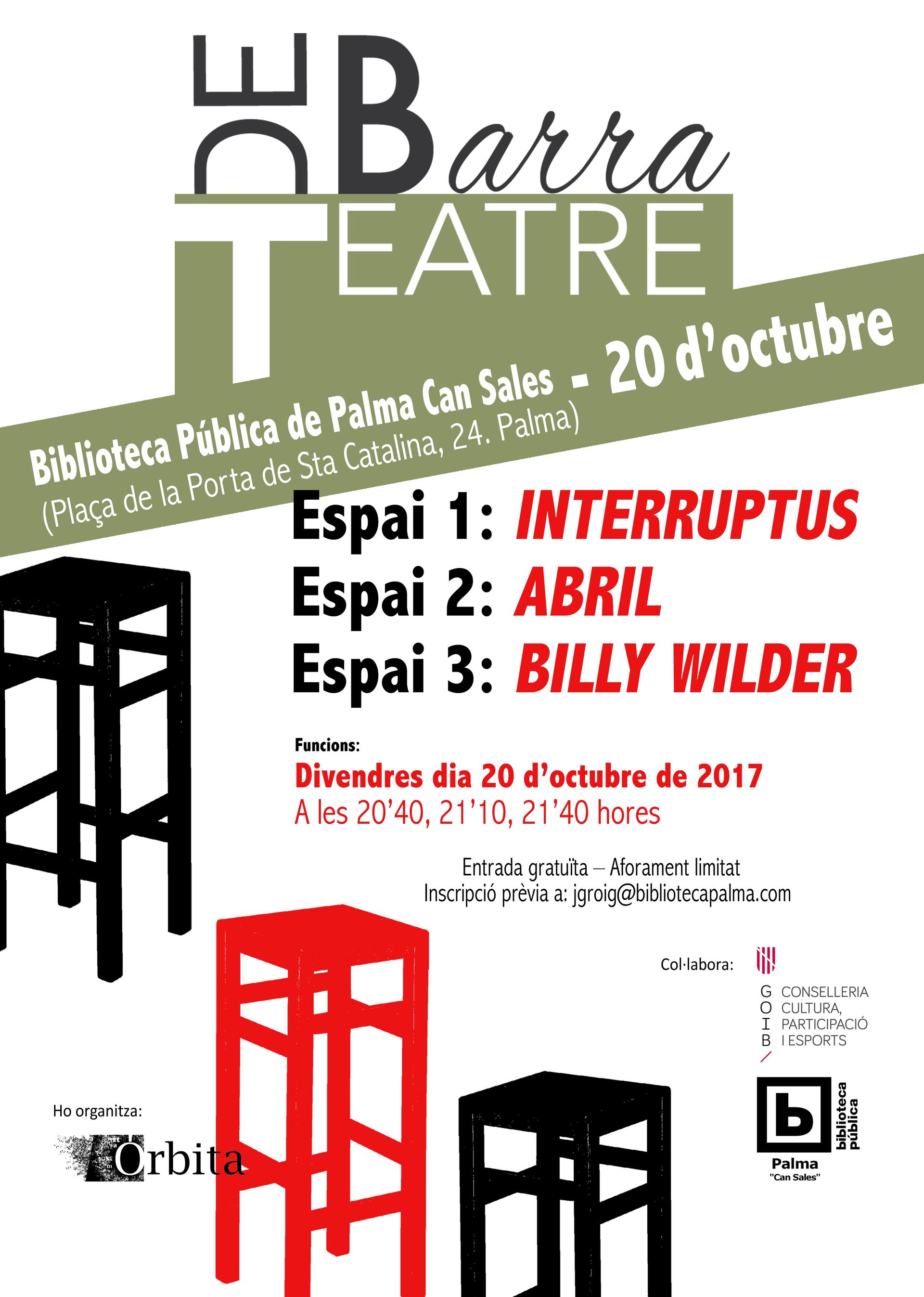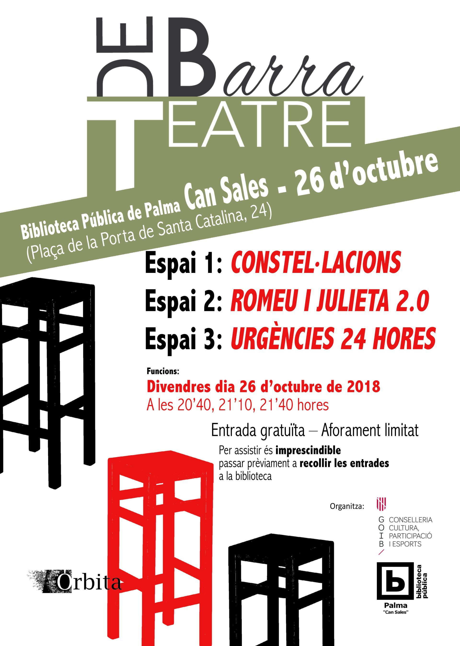 La biblioteca ofereix una tarda de teatre!. Es tracta de petites obres que es fan per diferents sales de la biblioteca a càrrec de “Teatre de Barra”