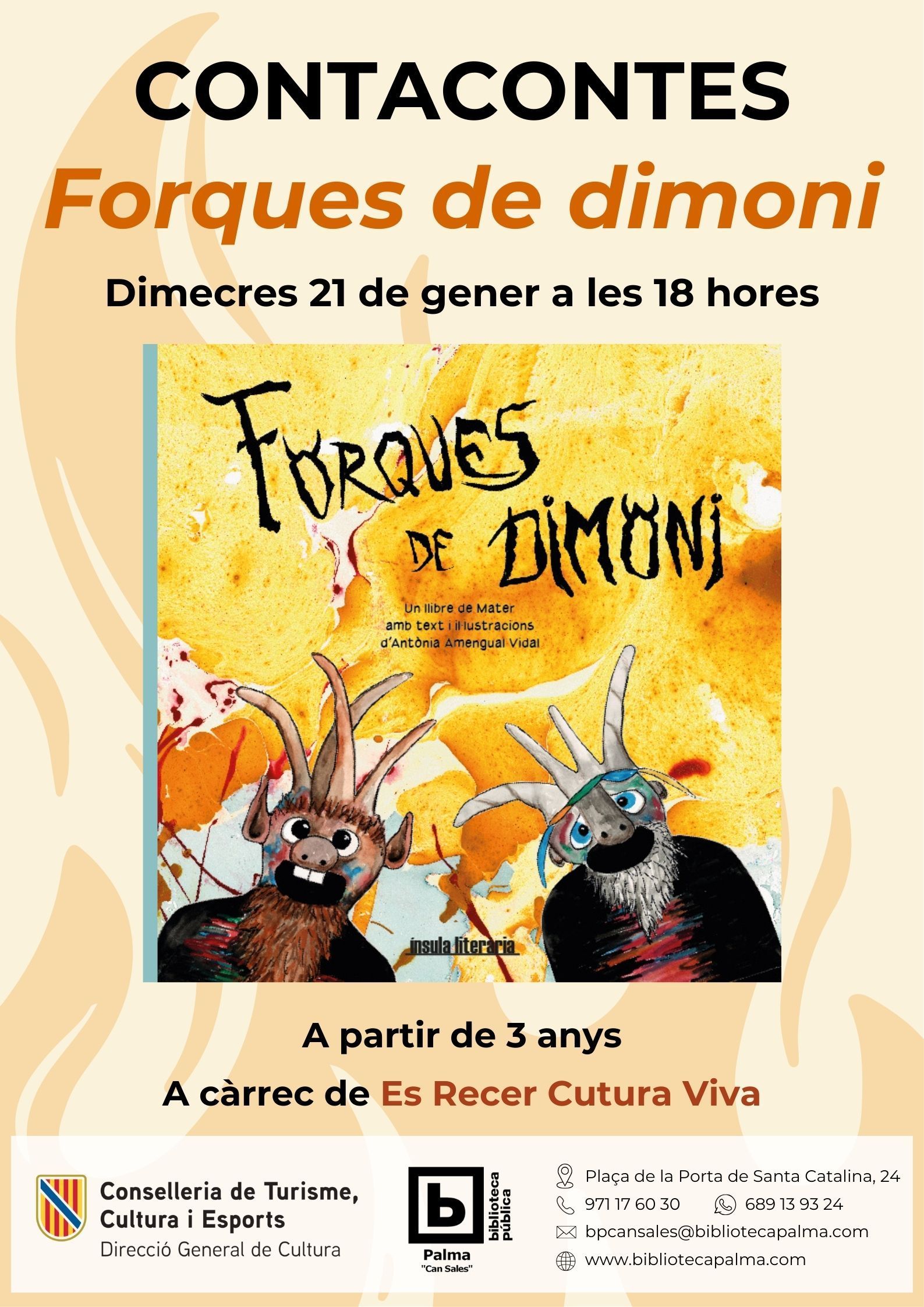 Cuentacuentos y taller Forques de dimoni a cargo de Es Recer Cultura Viva. A partir de 3 años. Miércoles 21 de enero a las 18 horas en la sala infantil!