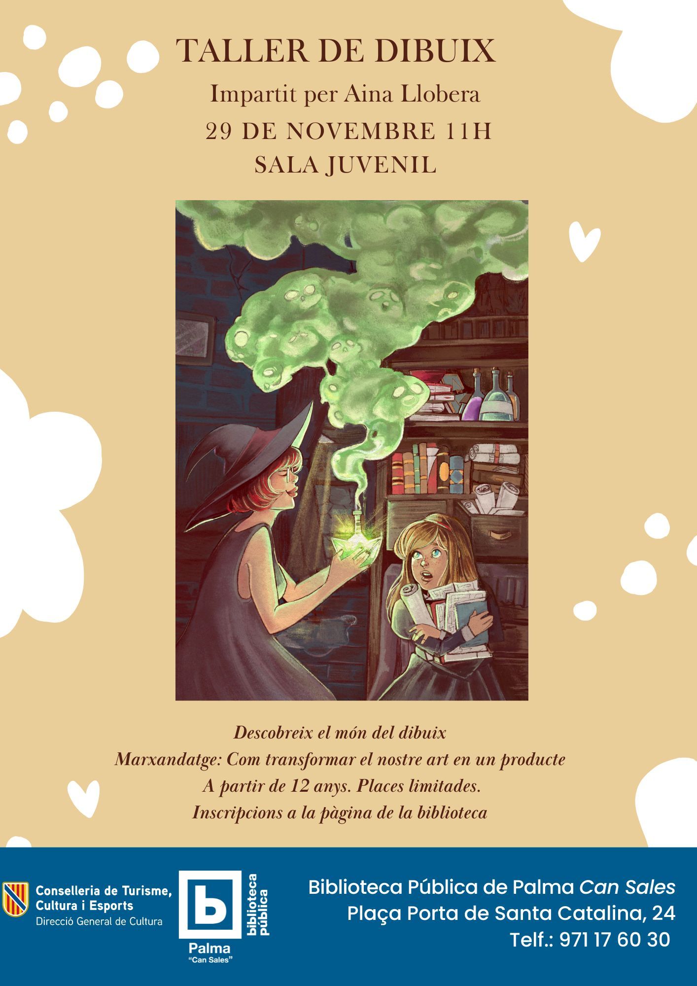 Taller de dibuix Marxandatge: com transformar el nostre art en un producte impartit per Aina Llobera. De 12 a 17 anys. Dissabte 29 de novembre a les 11 hores a la sala juvenil. Places limitades. Inscripcions aquí