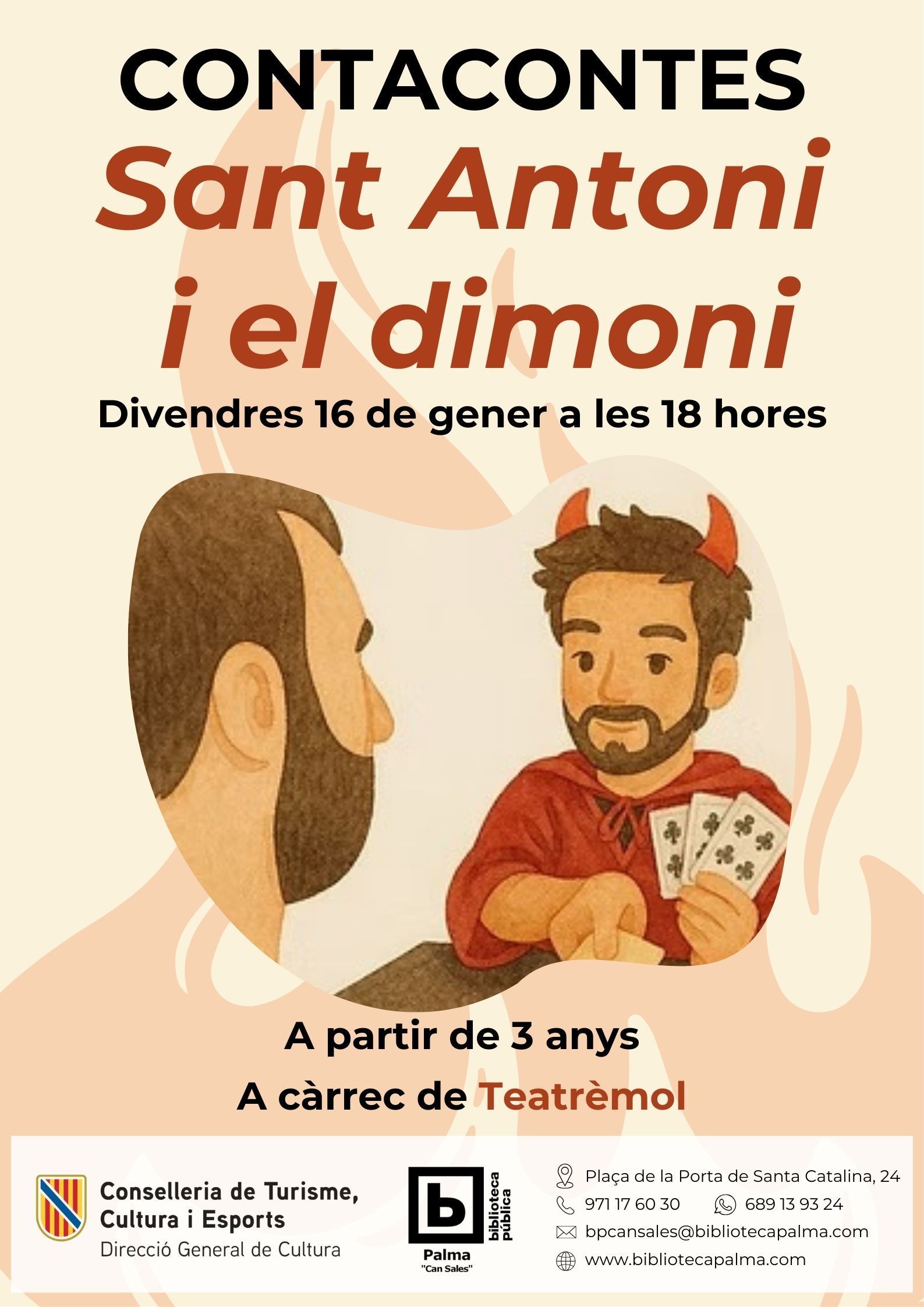 Contacontes Sant Antoni i el dimoni a càrrec de Teatrèmol. A partir de 3 anys. Divendres 16 de gener a les 18 hores a la sala infantil!
