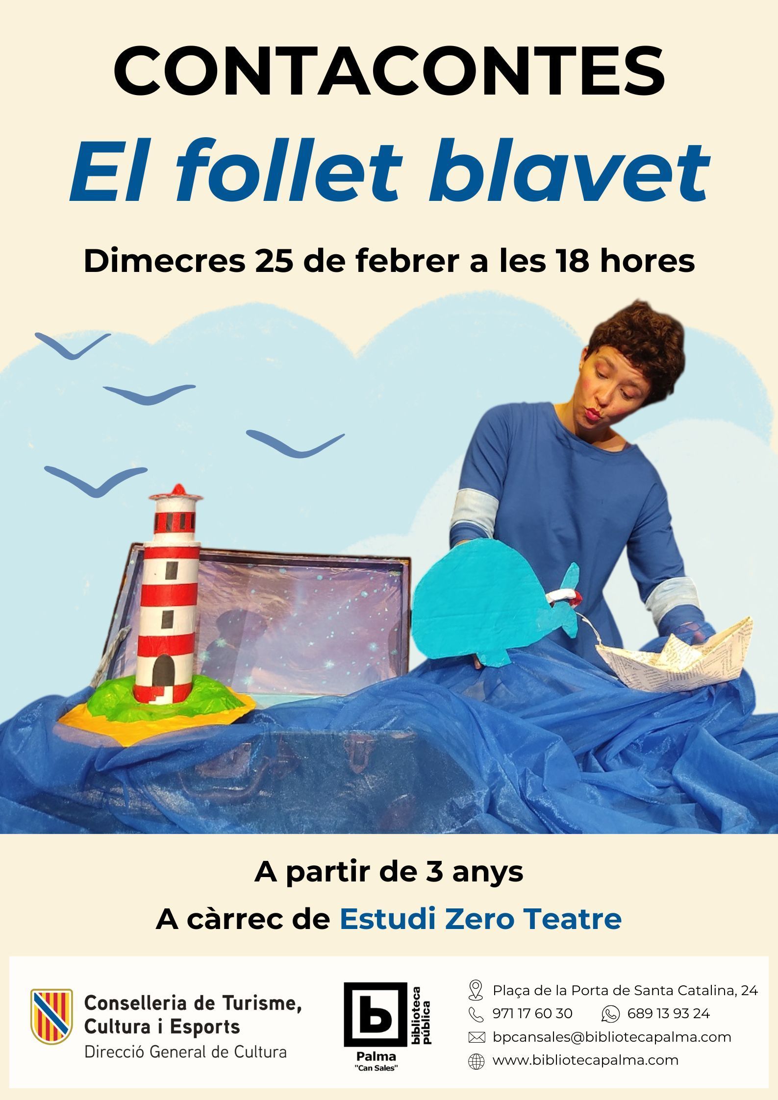 Contacontes El follet blavet a càrrec d’Estudi Zero Teatre. A partir de 3 anys. Dimecres 25 de febrer a les 18 hores a la sala infantil!
